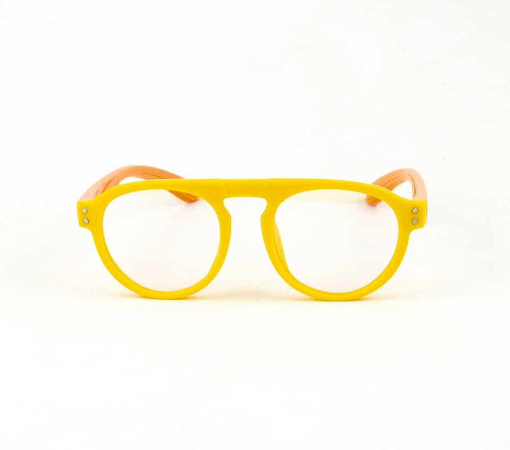 armação óculos grau atacado Material de silicone flexível na cor amarelo com rosa e lente de acrílico. Modelo frontal no formato retangular e aro fechado, ponte de silicone e plaqueta de silicone. Hastes de silicone flexível na cor rosa claro com mola flexível que permite uma abertura de até 90 graus, que se ajusta ao rosto e ponteira de acetato para proporcionar conforto e segurança atrás da orelha. Óculos Infantil com acabamento brilhante.