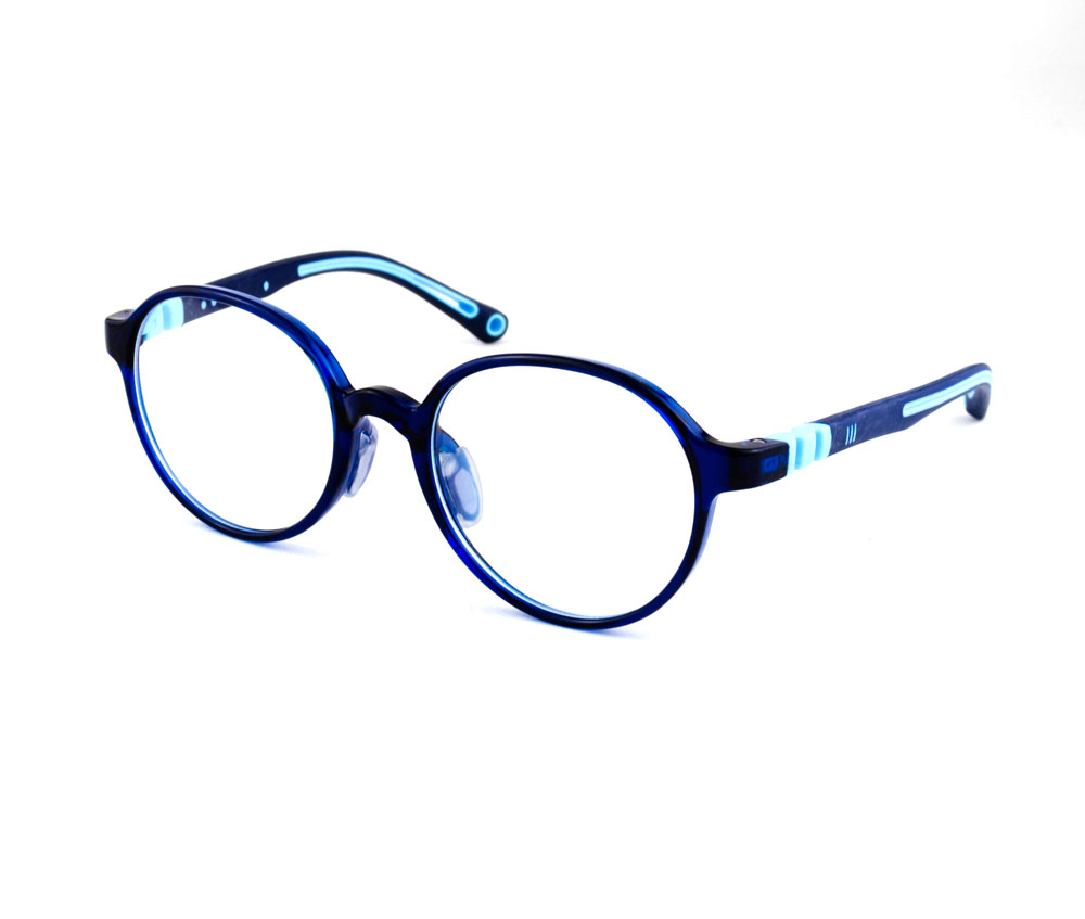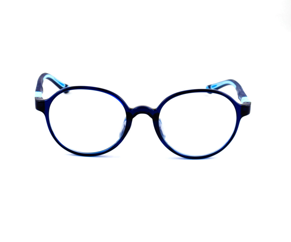 armação óculos grau atacado Material de silicone flexível na cor azul e lente de acrílico. Modelo frontal no formato retangular e aro fechado, ponte de silicone e plaqueta de silicone. Hastes de silicone flexível na cor azul com mola flexível que permite uma abertura de até 90 graus, que se ajusta ao rosto e ponteira de acetato para proporcionar conforto e segurança atrás da orelha. Óculos Infantil com acabamento fosco.