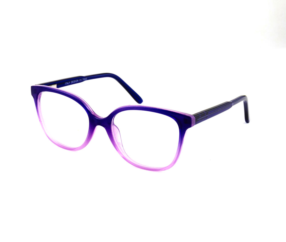 armação óculos grau atacado Material de acetato na cor roxo degrade com verde e lente de acrílico. Modelo frontal no formato retangular e aro fechado, ponte de silicone e plaqueta de silicone. Hastes na cor roxo, que se ajusta ao rosto e ponteira de acetato para proporcionar conforto e segurança atrás da orelha. Óculos Infantil com acabamento brilhante.