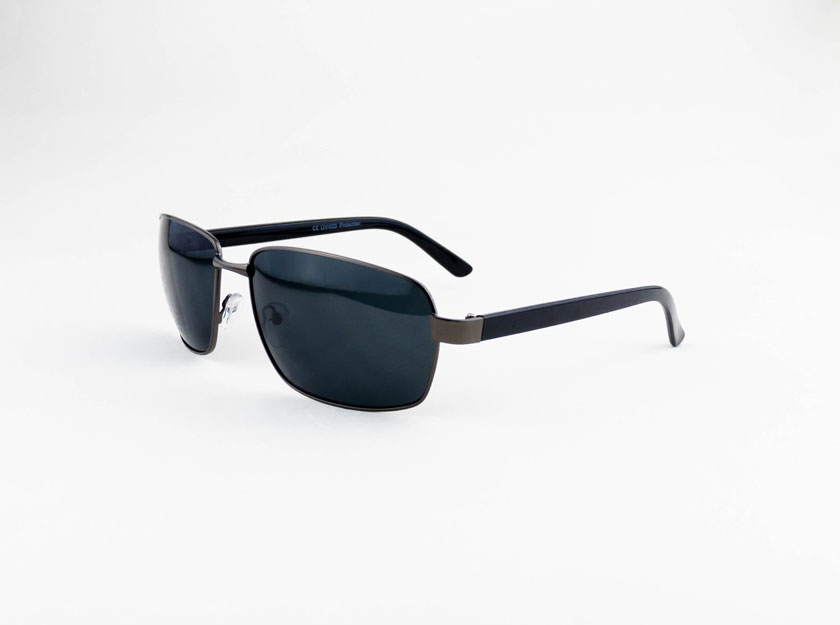 óculos solar atacado Material de metal na cor chumbo com lente UV400 polarizado na cor black. Solar, modelo frontal no formato retangular com aro fechado, ponte de metal e plaquetas de silicone. Hastes de acetato na cor preto e ponteira de acetato para proporcionar conforto e segurança atrás da orelha. Solar com acabamento brilhante.