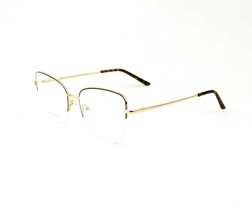 armação óculos grau atacado Material de metal na cor dourado com marrom e lente de acrílico. Armação, modelo frontal no formato quadrado e aro semiaberto na cor dourado com marrom, ponte de metal na cor dourado e plaqueta de silicone na cor transparente. Hastes de metal na cor dourado e mola flexível que permite uma abertura de até 90 graus, que se ajusta ao rosto e ponteira de acetato na cor tartaruga marrom para proporcionar conforto e segurança atrás da orelha. Armação com acabamento brilhante.