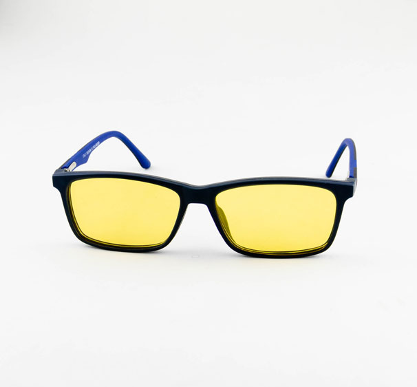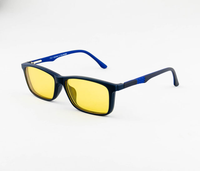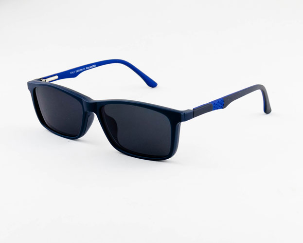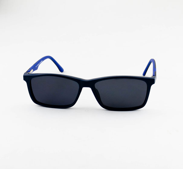 óculos solar atacado Clipon masculino no material de acetato tr90 na cor azul e lente de acrílico com acabamento brilhante.