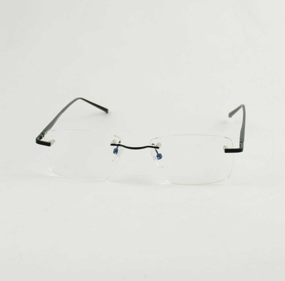 armação óculos grau atacado Material de alumínio na cor preto e lente de acrílico. Modelo frontal no formato retangular e aro aberto, ponte de metal parafusado e plaqueta de silicone na cor transparente. Hastes de alumínio na cor preto com mola flexível que permite uma abertura de até 180º graus, que se ajusta ao rosto e ponteira de alumínio para proporcionar conforto e segurança atrás da orelha. Armação com acabamento brilhante.