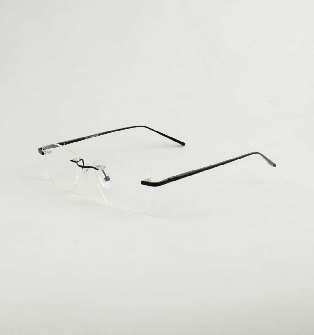armação óculos grau atacado Material de alumínio na cor preto e lente de acrílico. Modelo frontal no formato retangular e aro aberto, ponte de metal parafusado e plaqueta de silicone na cor transparente. Hastes de alumínio na cor preto com mola flexível que permite uma abertura de até 180º graus, que se ajusta ao rosto e ponteira de alumínio para proporcionar conforto e segurança atrás da orelha. Armação com acabamento brilhante.