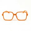armação óculos grau atacado Material de silicone flexível na cor laranja com amarelo e lente de acrílico. Modelo frontal no formato retangular e aro fechado, ponte de silicone e plaqueta de silicone. Hastes de silicone flexível na cor amarelo com mola flexível que permite uma abertura de até 90 graus, que se ajusta ao rosto e ponteira de acetato para proporcionar conforto e segurança atrás da orelha. Óculos Infantil com acabamento fosco.