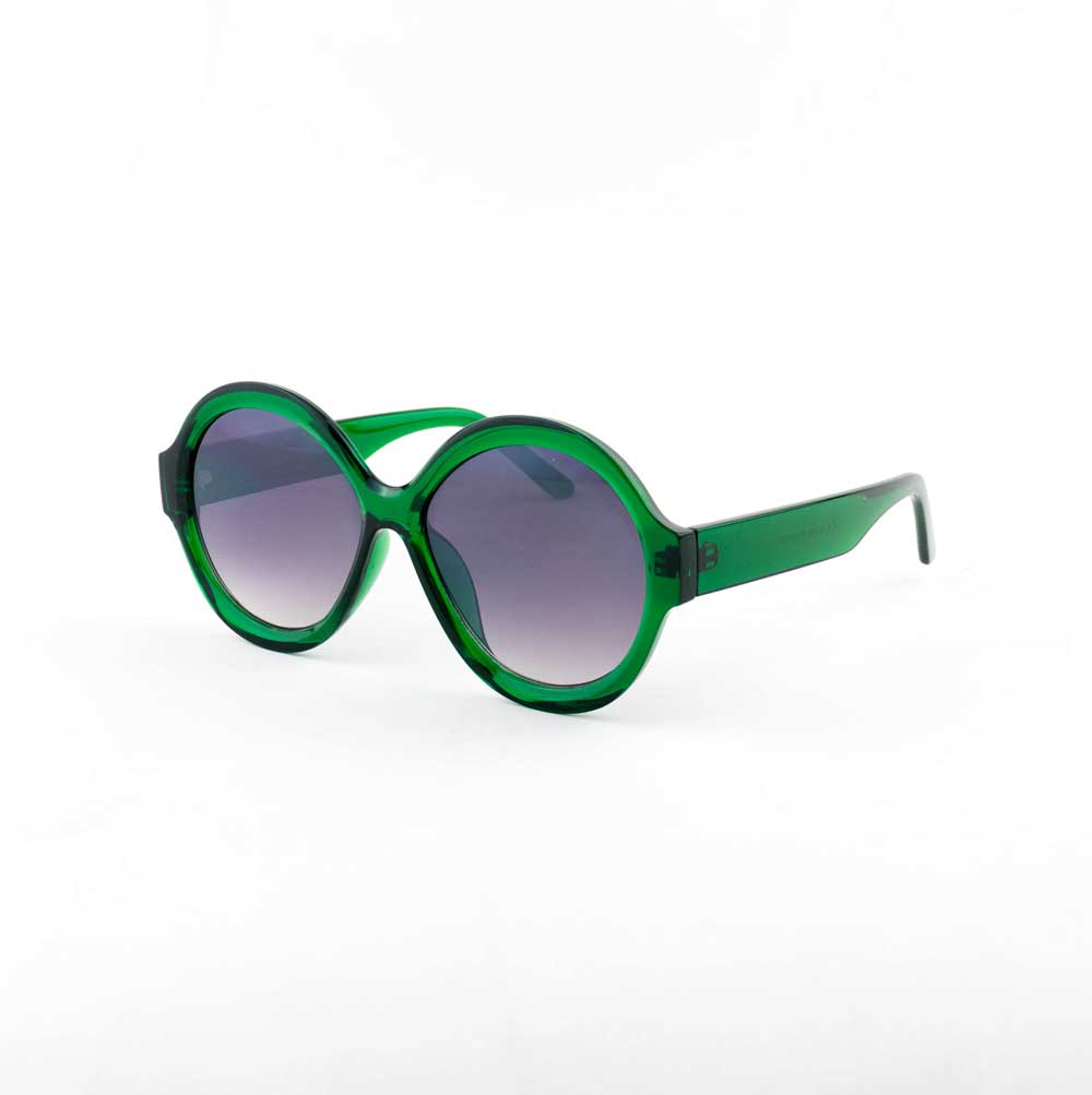 óculos solar atacado Material de acetato na cor verde e lente UV400 na cor degrade black. Solar, modelo frontal no formato arredondado com aro fechado, ponte de acetato e plaquetas de acetato. Hastes de acetato na cor verde e ponteira de acetato para proporcionar conforto e segurança atrás da orelha. Solar com acabamento brilhante.