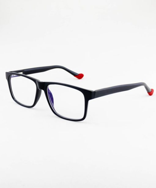 armação óculos grau atacado Material de acetato TR90 e metal na cor preto com vermelho e lente de acrílico. Armação, modelo frontal no formato quadrado e aro fechado na cor preto, ponte de acetato na cor preto fosco e plaqueta de acetato na cor preto fosco. Hastes de metal e acetato parafusado na cor chumbo e vermelho com mola flexível que permite uma abertura de até 90 graus, que se ajusta ao rosto e ponteira de acetato na cor vermelho fosco para proporcionar conforto e segurança atrás da orelha. Armação com acabamento fosco.