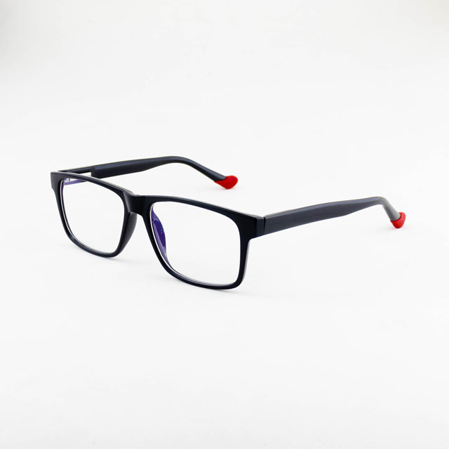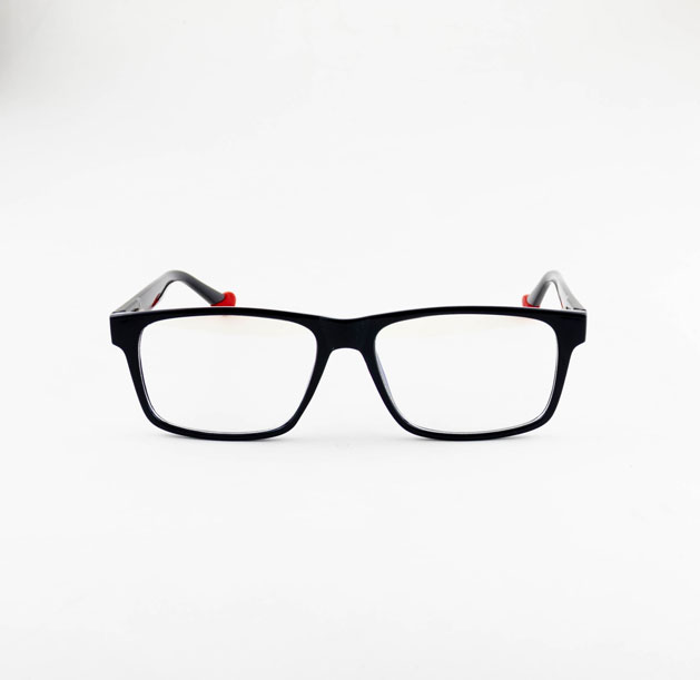 armação óculos grau atacado Material de acetato TR90 e metal na cor preto com vermelho e lente de acrílico. Armação, modelo frontal no formato quadrado e aro fechado na cor preto, ponte de acetato na cor preto fosco e plaqueta de acetato na cor preto fosco. Hastes de metal e acetato parafusado na cor chumbo e vermelho com mola flexível que permite uma abertura de até 90 graus, que se ajusta ao rosto e ponteira de acetato na cor vermelho fosco para proporcionar conforto e segurança atrás da orelha. Armação com acabamento fosco.