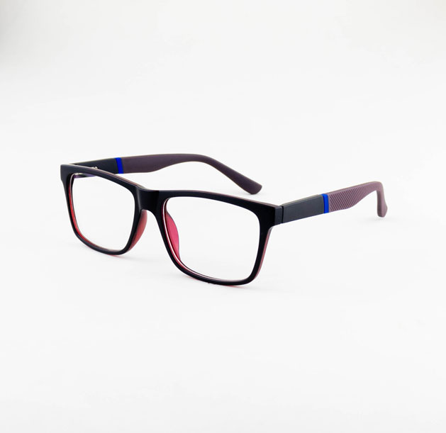 armação óculos grau atacado Material de acetato TR90 e metal na cor preto com marrom e lente de acrílico. Armação, modelo frontal no formato quadrado e aro fechado na cor preto, ponte de acetato na preto e plaqueta de acetato na cor preto. Hastes marrom com azul e charneira parafusado com mola flexível que permite uma abertura de até 90º graus, que se ajusta ao rosto e ponteira de metal emborrachado na cor preto fosco e grafite para proporcionar conforto e segurança atrás da orelha. Armação com acabamento brilhante.