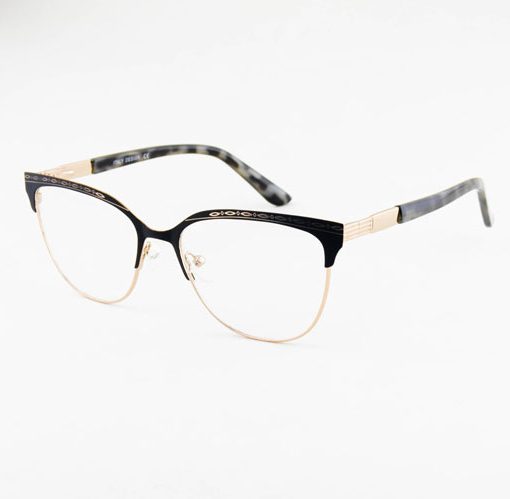 armação óculos grau atacado Material de metal com acetato brilhante na cor dourado com preto e lente de acrílico.