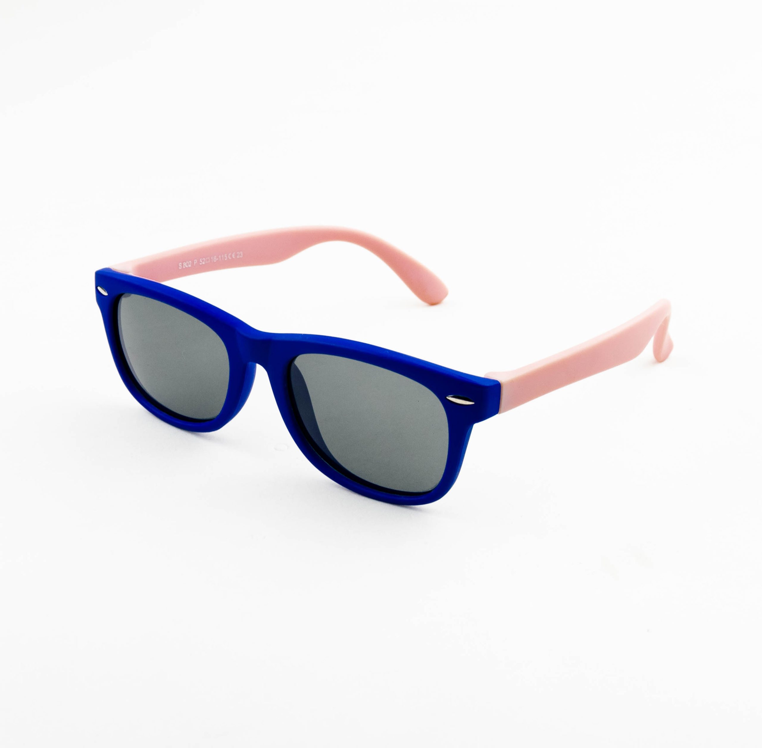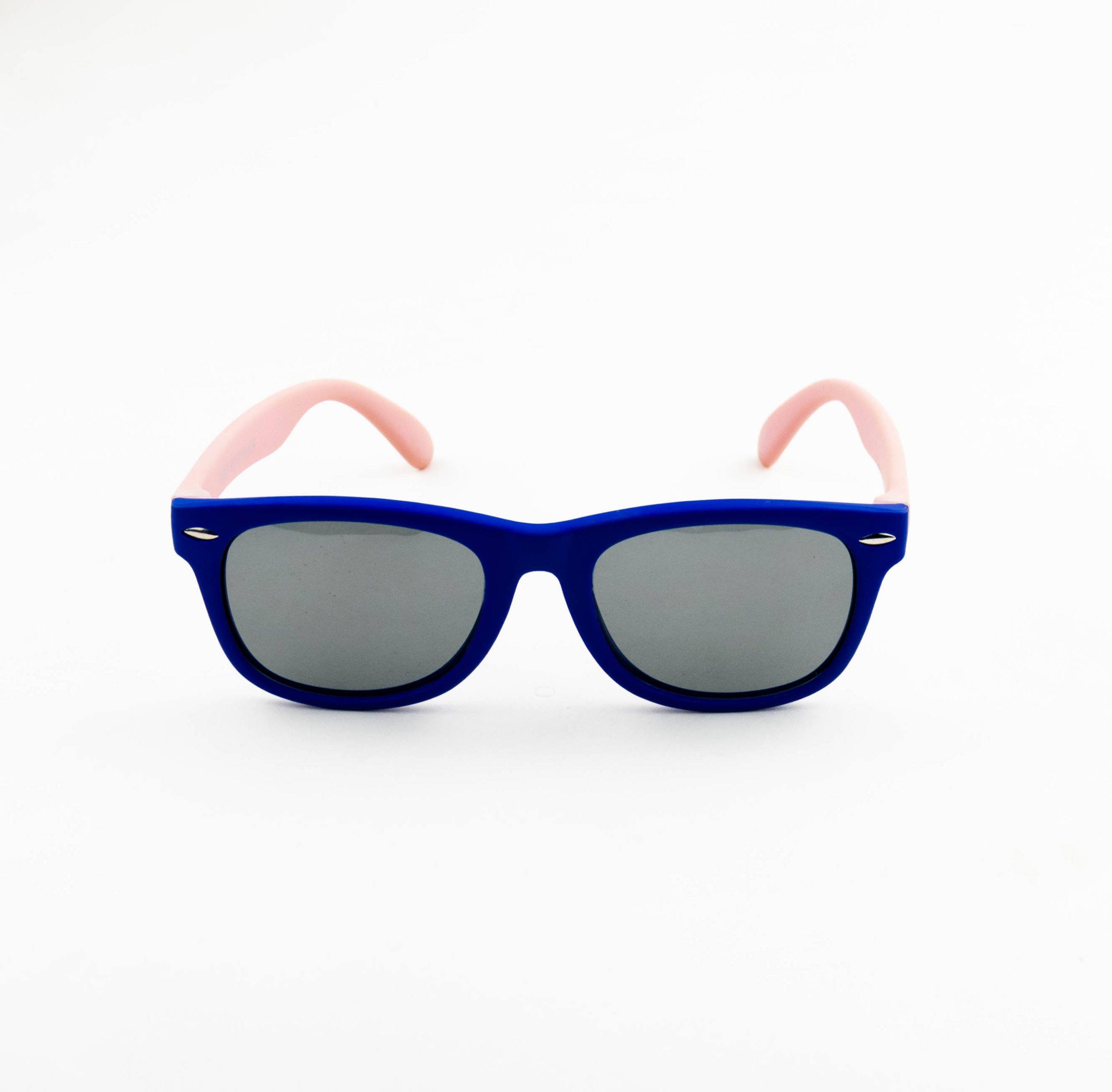 óculos solar atacado Material de silicone flexível nylon brilhante na cor azul e rosa com lente polarizado na cor black. Solar, modelo frontal no formato arredondado com aro fechado na cor azul, ponte de acetato na cor rosa e plaquetas de acetato brilhante na cor . Hastes de silicone flexível nylon brilhante na cor rosa e ponteira de silicone flexível nylon na cor rosa para proporcionar conforto e segurança atrás da orelha. Solar com acabamento brilhante.