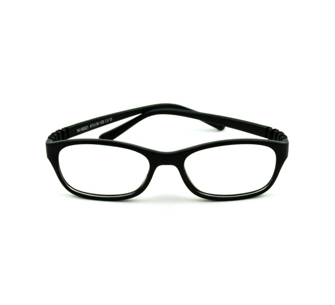 armação óculos grau atacado Material de silicone flexível nylon na cor preto e lente de acrílico. Armação, modelo frontal no formato retangular e aro fechado na cor preto, ponte de silicone na cor preto e plaqueta de silicone na cor preto. Hastes de silicone flexível nylon na cor preto e ponteira de silicone na cor preto para proporcionar conforto e segurança atrás da orelha. Armação com acabamento fosco.