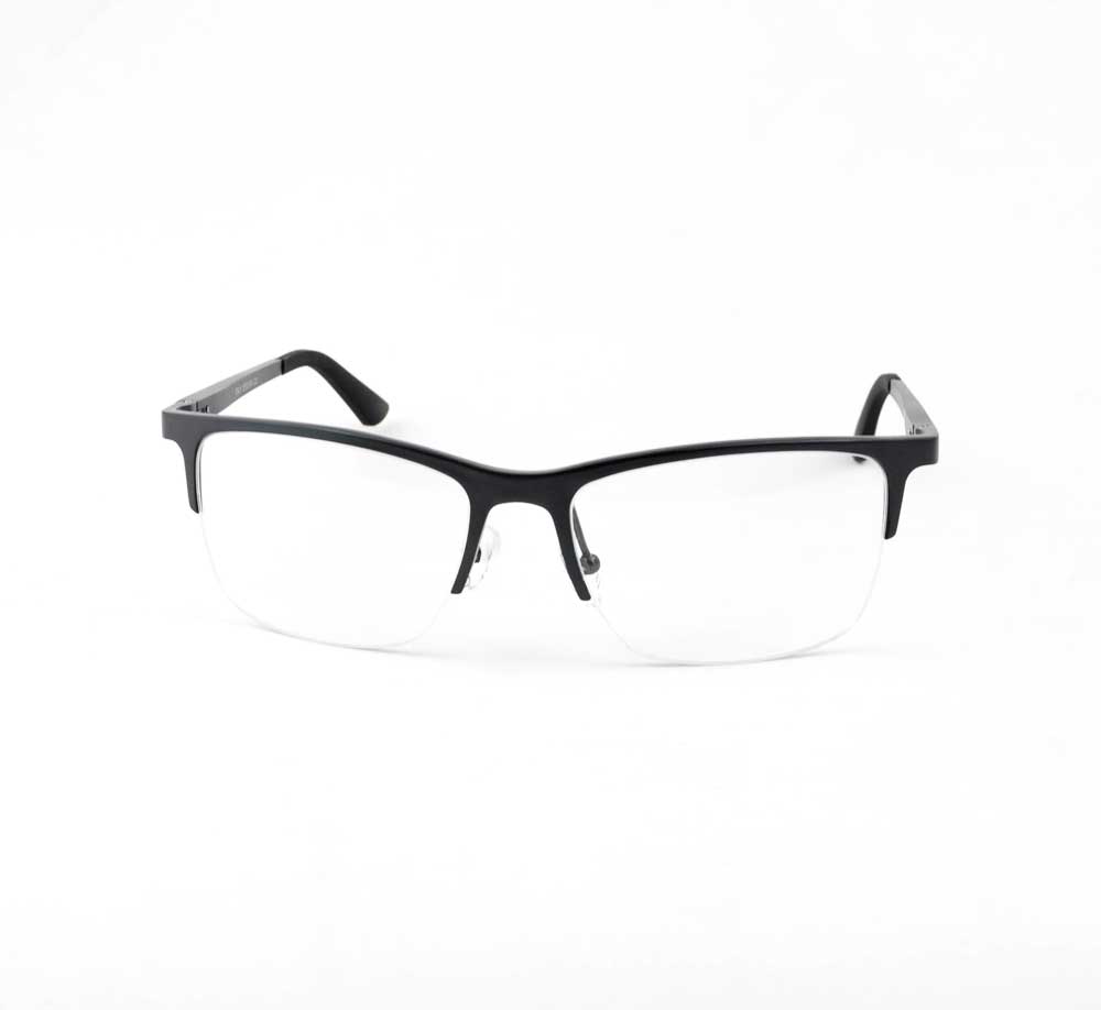 armação óculos grau atacado Material de alumínio na cor grafite e lente de acrílico. Modelo frontal no formato quadrado e aro semiaberto com fio de nylon, ponte de alumínio e plaqueta de silicone na cor transparente. Hastes de alumínio na cor grafite com mola flexível que permite uma abertura de até 90 graus, que se ajusta ao rosto e ponteira emborrachado na cor preto fosco para proporcionar conforto e segurança atrás da orelha. Armação com acabamento fosco.
