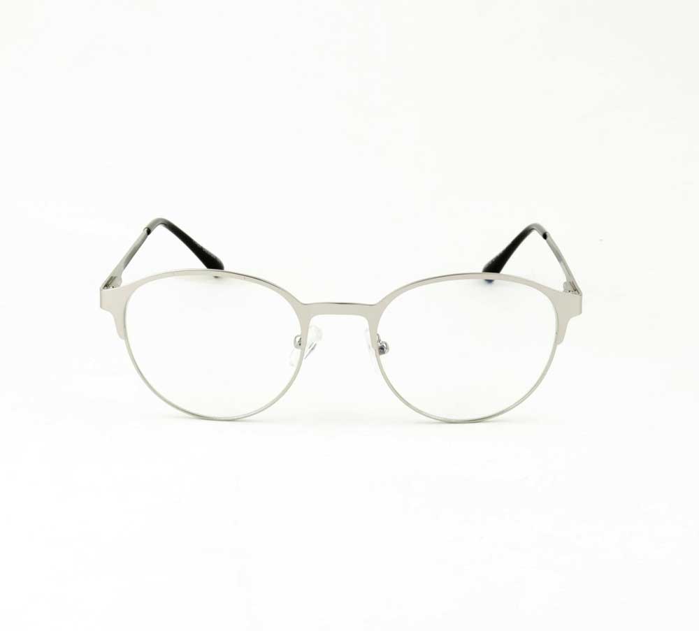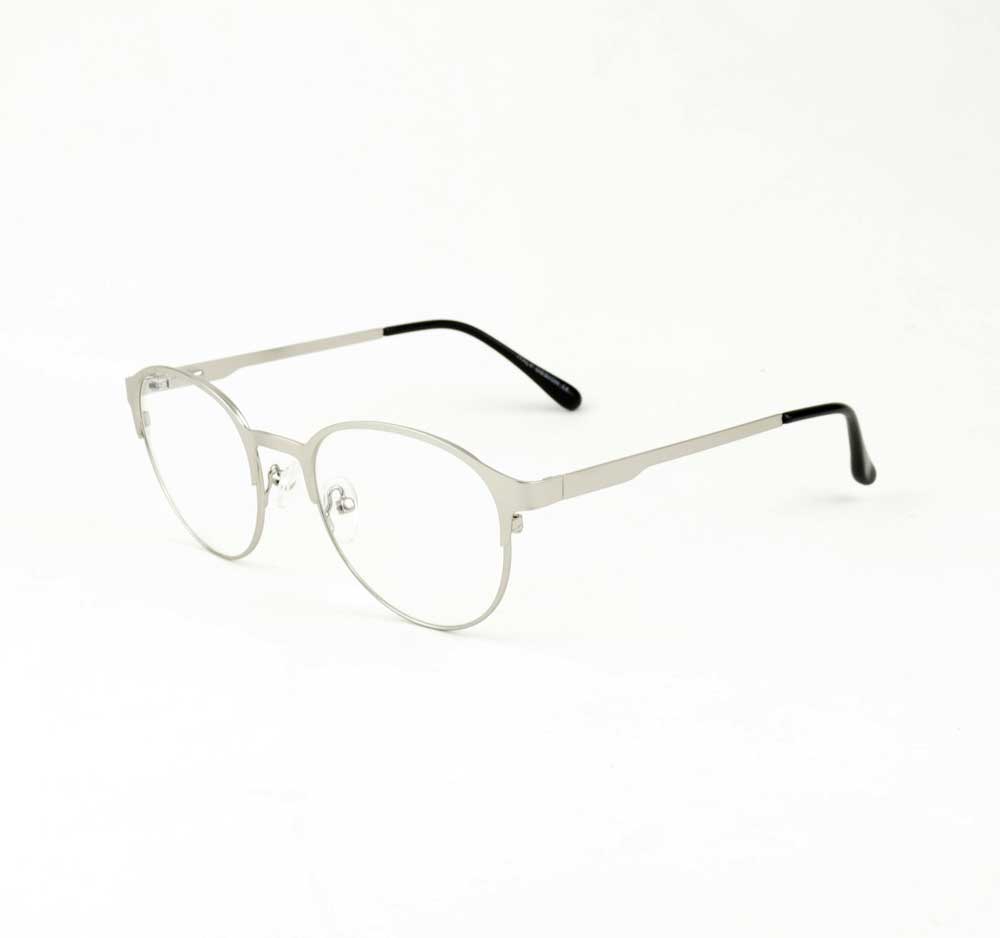 armação óculos grau atacado Material de metal na cor prata com lente de acrílico. Armação, modelo frontal no formato redondo e aro fechado parafusado na cor prata, ponte de metal na cor prata e plaqueta de silicone. Hastes de metal na cor prata com mola flexível que permite uma abertura de até 90 graus, que se ajusta ao rosto e ponteira de acetato na cor preto para proporcionar conforto e segurança atrás da orelha. Armação com acabamento brilhante.