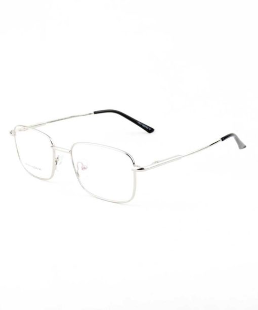 armação óculos grau atacado Material de metal na cor prata com lente de acrílico. Modelo frontal no formato quadrado e aro fechado parafusado, ponte de metal e plaqueta de silicone na cor transparente. Hastes de metal na cor prata com mola flexível que permite uma abertura de até 90 graus, que se ajusta ao rosto e ponteira de acetato na cor preto para proporcionar conforto e segurança atrás da orelha. Armação com acabamento brilhante.