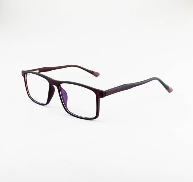 armação óculos grau atacado Material de acetato TR90 na cor marrom fosco e lente de acrílico. Armação, modelo frontal no formato retangular com aro fechado na cor marrom fosco, ponte de acetato na cor marrom fosco e plaqueta de acetato na cor marrom fosco. Hastes de acetato TR90 na cor preto fosco com marrom com mola flexível que permite uma abertura de até 90º graus, que se ajusta ao rosto e ponteira de acetato na cor preto fosco para proporcionar conforto e segurança atrás da orelha. Armação com acabamento fosco.