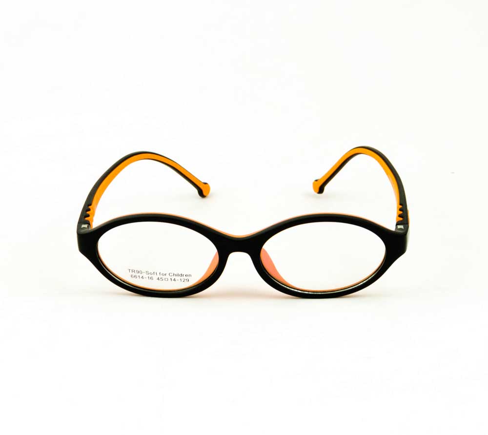 armação óculos grau atacado Material de silicone flexível nylon na cor preto com laranja e lente de acrílico. Armação, modelo frontal no formato arredondado e aro fechado na cor preto com laranja, ponte de silicone na cor preto com laranja e plaqueta de silicone na cor laranja. Hastes de silicone flexível nylon na cor preto com laranja e ponteira de silicone flexível na cor preto com laranja para proporcionar conforto e segurança atrás da orelha. Armação com acabamento brilhante.