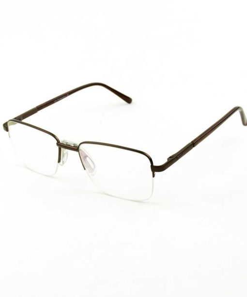 armação óculos grau atacado Material de metal na cor marrom e lente de acrílico. Modelo frontal no formato retangular e aro semiaberto com fio de nylon, ponte de metal e plaqueta anatômica na cor transparente. Hastes de metal na cor marrom com mola flexível que permite uma abertura de até 90 graus, que se ajusta ao rosto e ponteira acetato para proporcionar conforto e segurança atrás da orelha. Armação com acabamento brilhante.