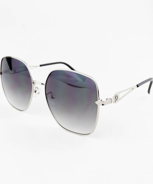 óculos solar atacado Material de metal na cor prata e lente UV400 na cor degrade grafite. Solar, modelo frontal no formato arredondado com aro fechado, ponte de metal e plaquetas de silicone. Hastes de metal na cor prata e ponteira de acetato na cor preto para proporcionar conforto e segurança atrás da orelha. Solar com acabamento brilhante.