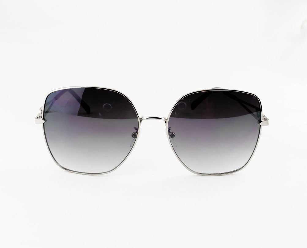 óculos solar atacado Material de metal na cor prata e lente UV400 na cor degrade grafite. Solar, modelo frontal no formato arredondado com aro fechado, ponte de metal e plaquetas de silicone. Hastes de metal na cor prata e ponteira de acetato na cor preto para proporcionar conforto e segurança atrás da orelha. Solar com acabamento brilhante.