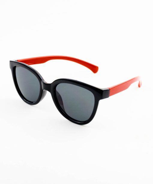 óculos solar atacado Material de silicone flexível nylon na cor preto e vermelho com lente UV400 polarizado na cor black. Solar, modelo frontal no formato retangular com aro fechado na cor preto, ponte de silicone na cor preto e plaquetas de silicone na cor preto. Hastes de silicone flexível nylon na cor vermelho e ponteira de acetato na cor vermelho para proporcionar conforto e segurança atrás da orelha. Solar com acabamento brilhante.