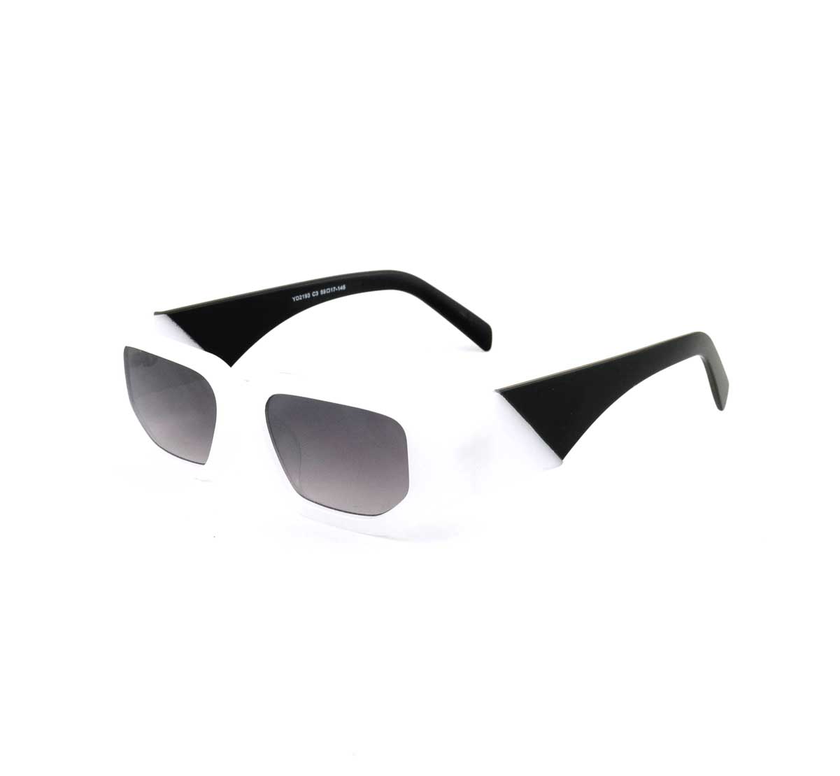 óculos solar atacado Material de acetato na cor branco com preto fosco e lente UV400 na cor degrade black. Solar, modelo frontal no formato retangular com aro fechado na cor branco, ponte de acetato na cor branco e plaquetas de acetato na cor branco. Hastes de acetato na cor branco com preto fosco e ponteira de acetato na cor preto fosco para proporcionar conforto e segurança atrás da orelha. Solar com acabamento brilhante.